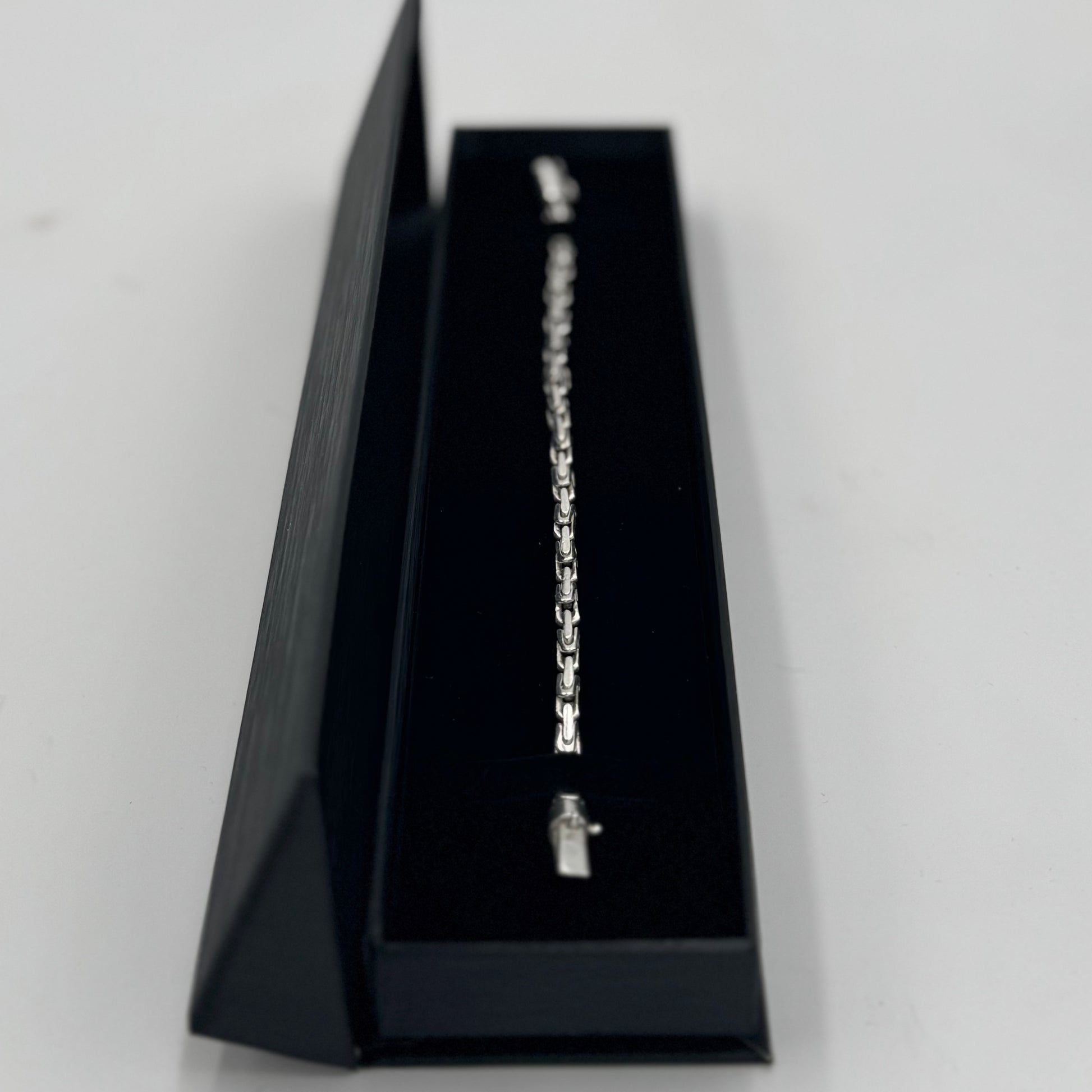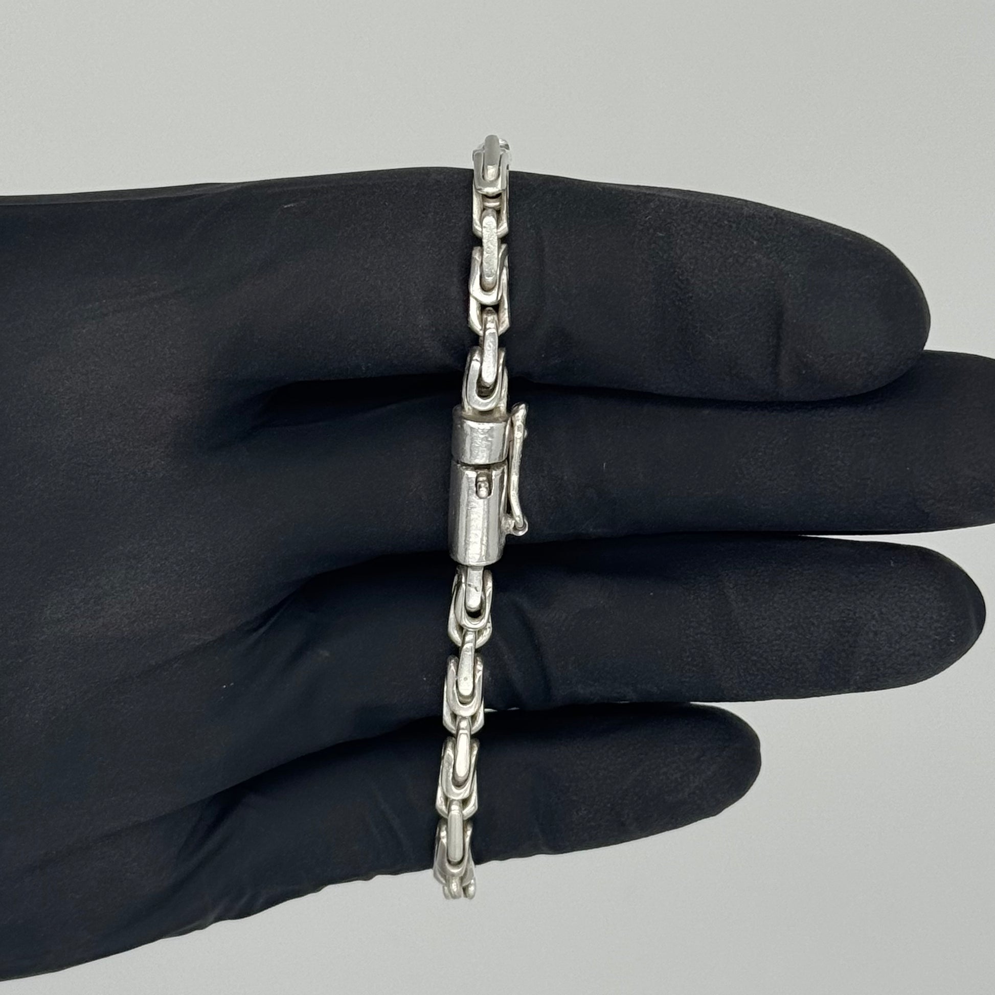A sterling silver bracelet with sleek, aligned links for an elegant, modern look