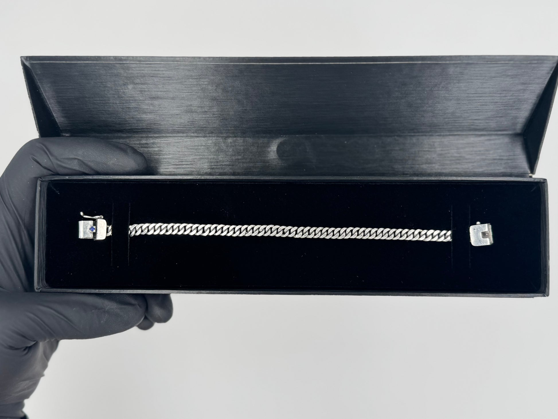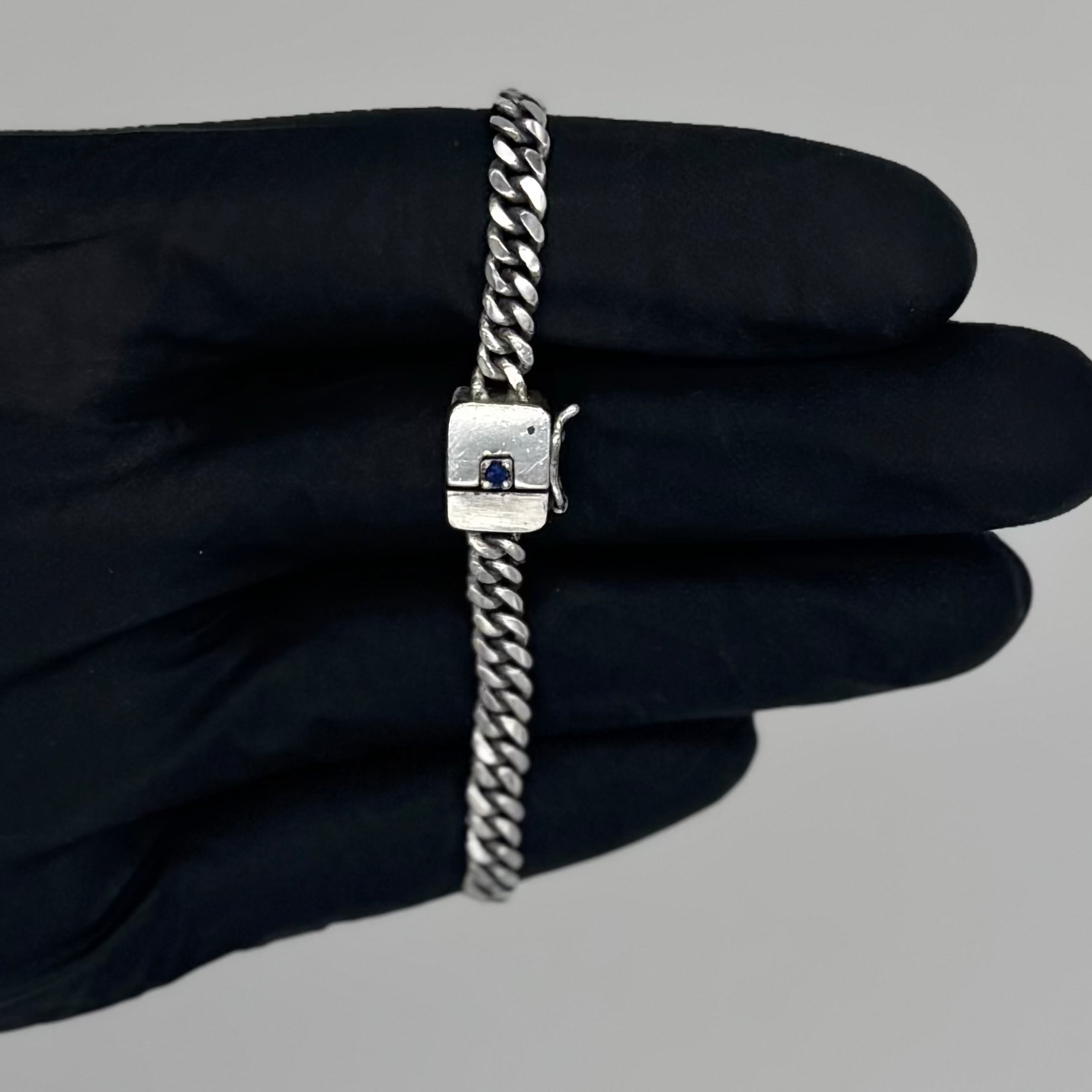 Handcrafted sterling silver cuban link with a high polish and refined dark accents